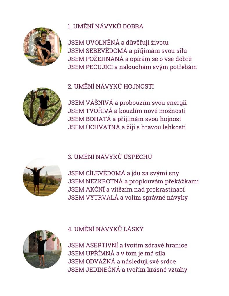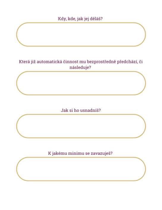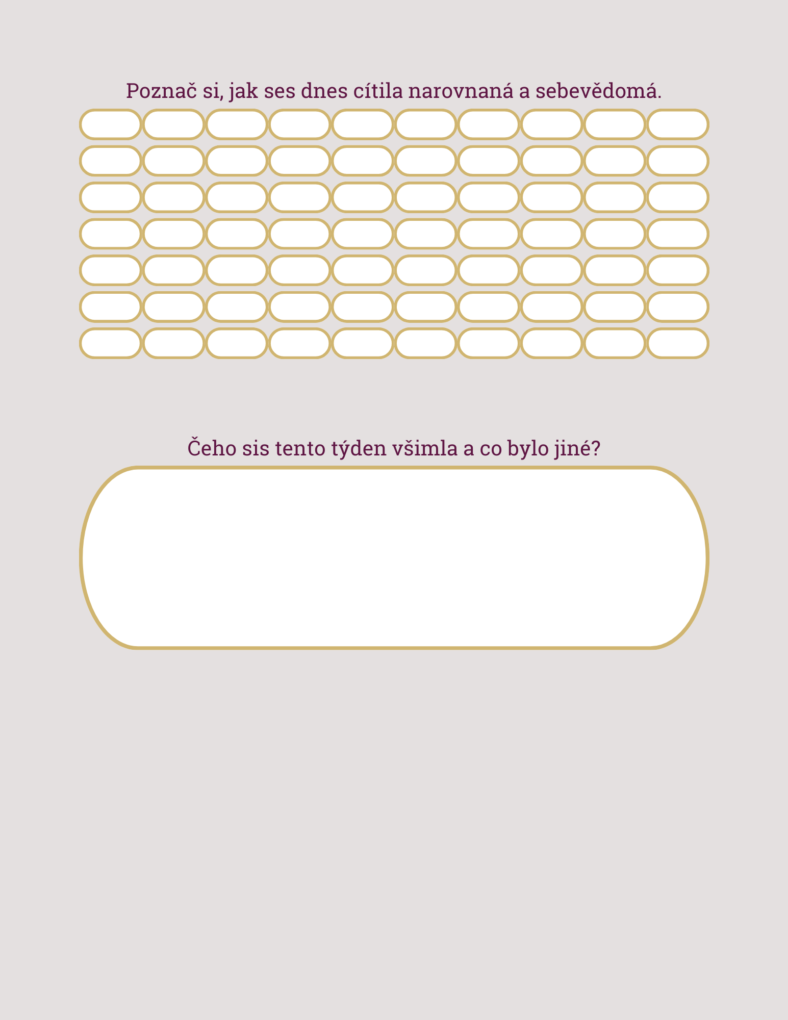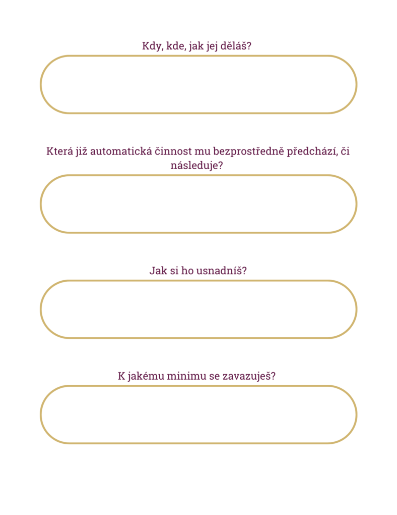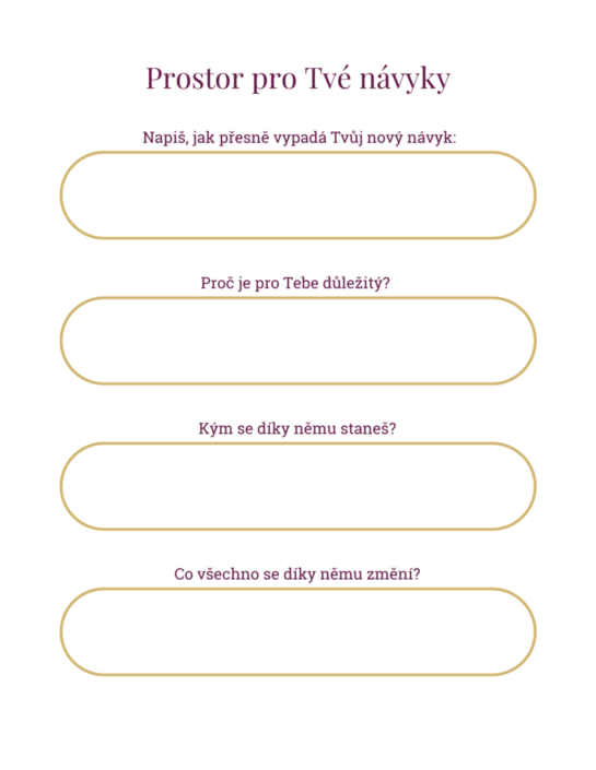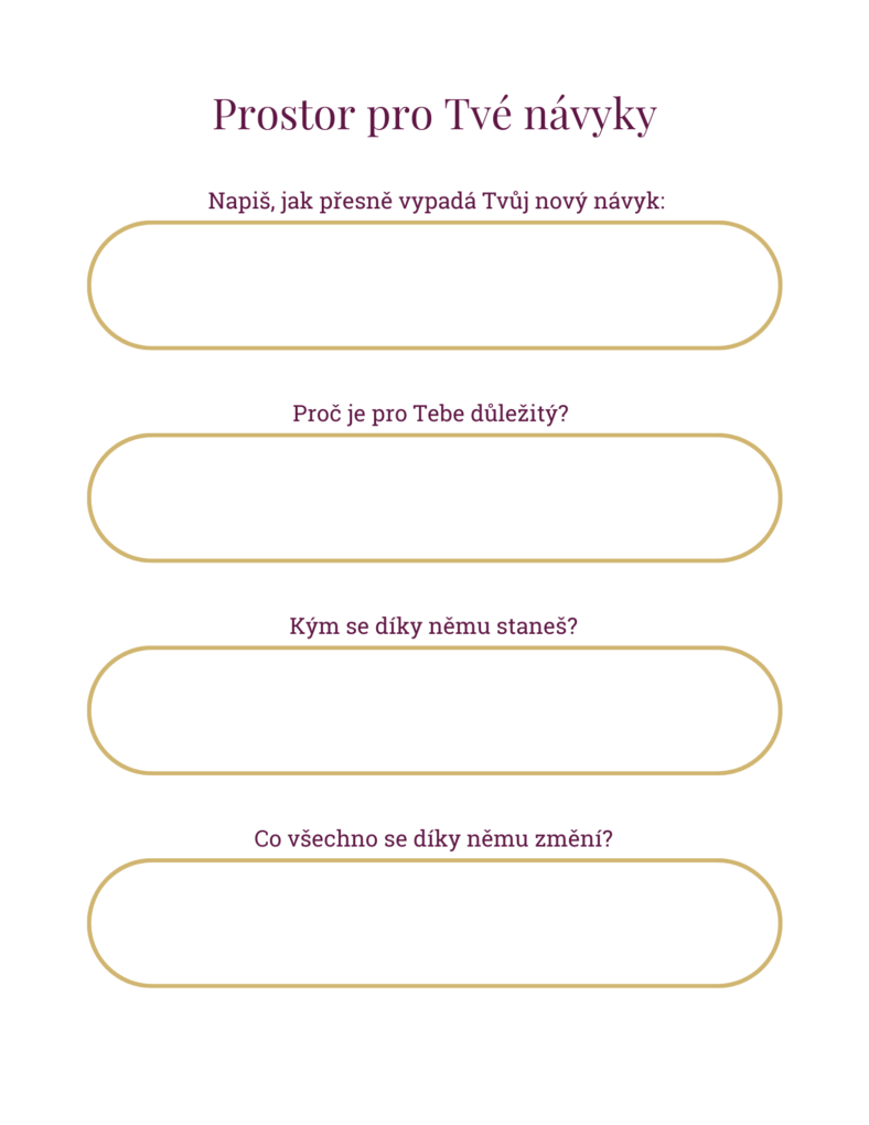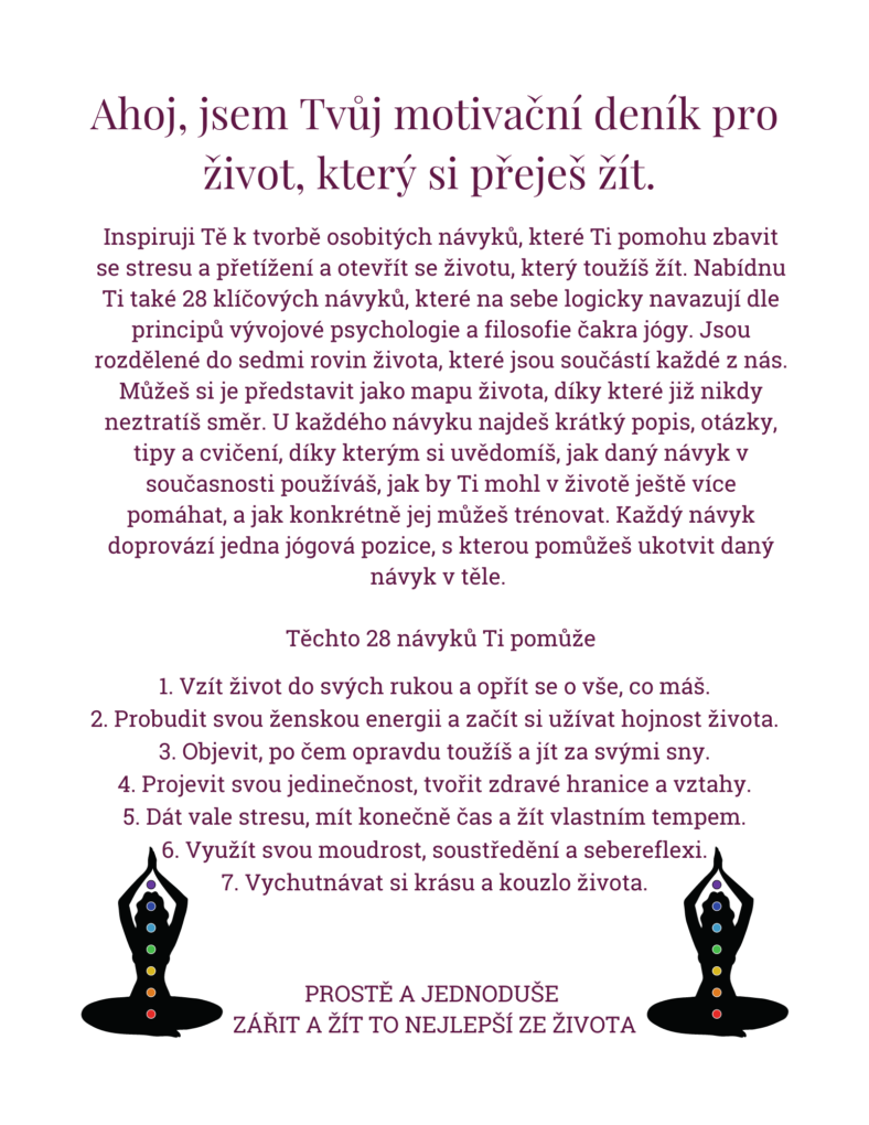 Díky tabulce na návyky jsem se naučila praktikovat každý den vděčnost. Vyplnila jsem už všechna políčka a jsem na to neskutečně pyšná. Přečetla jsem spoustu motivačních knih, byla na různých přednáškách a nic se nezměnilo. Pomohly mi až Tvoje jógové lekce a jednoduchá tabulka na návyky v Tvé knize. Opravdu jsem Ti velmi vděčná a moc Ti děkuji. Už přemýšlím, jaký nový návyk se začnu učit.