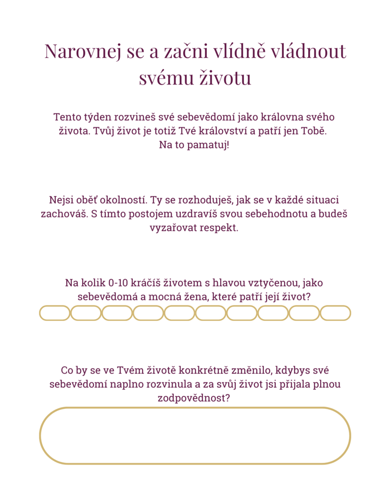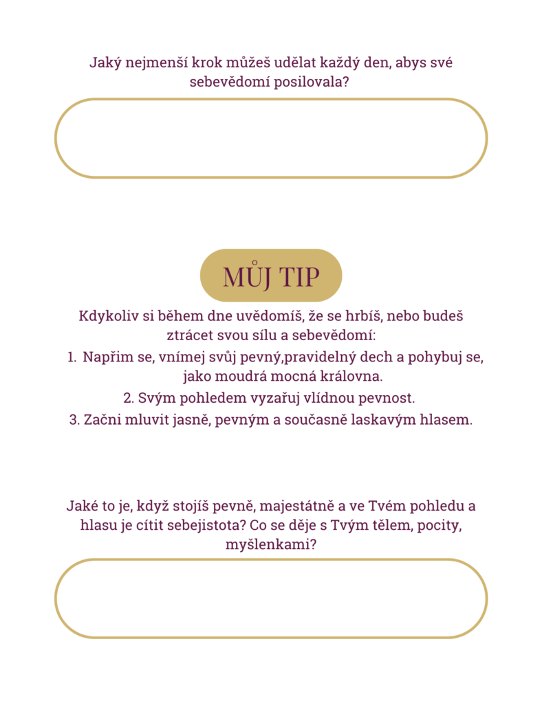 Díky návodným otázkám zvládnu být koučkou sama sobě a díky budování návyků se mi daří v životě jít vlastní cestou a tvořit to co chci.